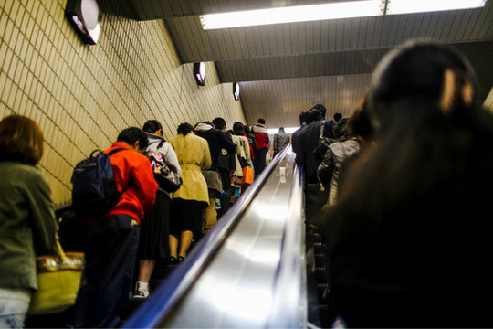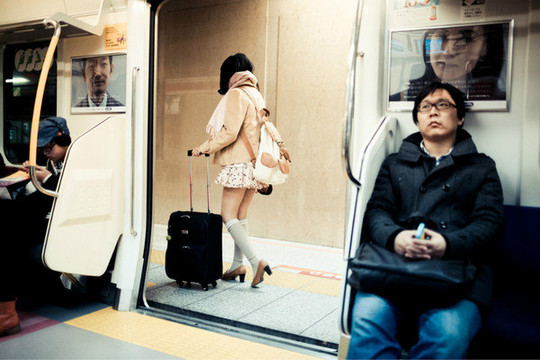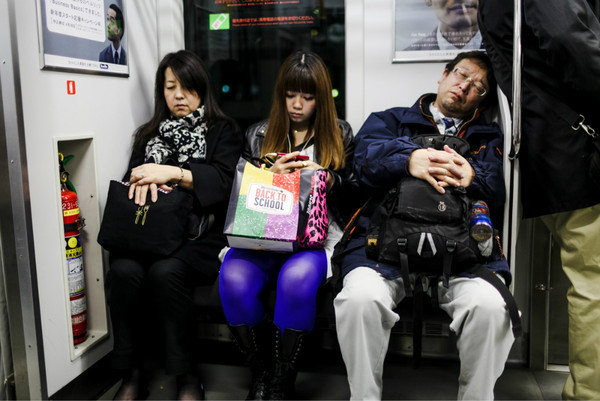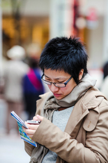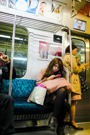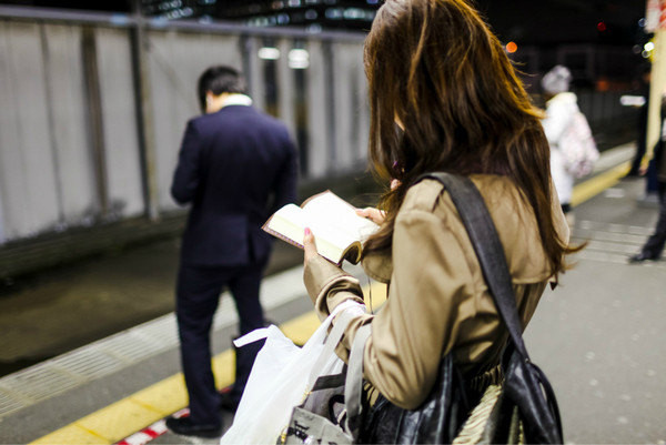 等车的少女。。。日本人很喜欢口袋书,比起香港来说,在途中玩手机的并不算太多