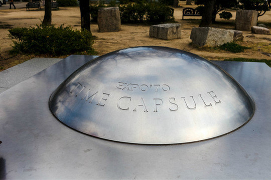 在1968年,日本的松下电器产业株式会社和每日新闻集团联合庆祝将在1970年举行的世界博览会。它们将两个完全一致的时间胶囊毗邻的埋在了。时间期限是5000年。其中一个已于2000年开启,此后每一百年都将开启一次来确认另一个时间胶囊是否还能完好保存。时间胶囊中分别放入了2090项物品,用来反映在1970年人们的日常生活,其中的物品包括避孕套、假牙、手铐和一个琥珀标本等等。