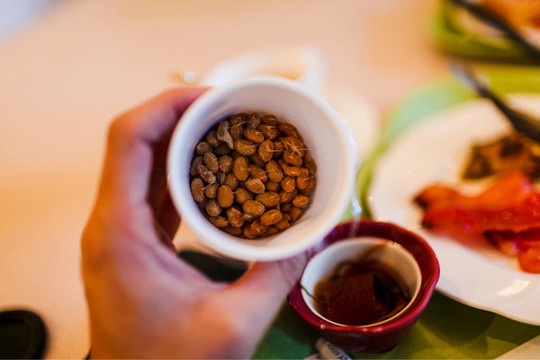 头天晚上,导游老爷子一直在鼓吹他的青春秘籍,除了低油脂的海产外,就是下面这个,纳豆,味道实在不怎么样,而且稍微一搅拌,它就会形成浓痰那感觉...咽不下去啊。。