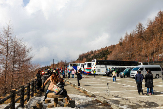 富士山从山脚到山顶分为十合,按行程是要到半山腰,也就是五合目的 很伤心,天上开始飘雪,五合目封闭,我们只能到达四合目。。海拔2020