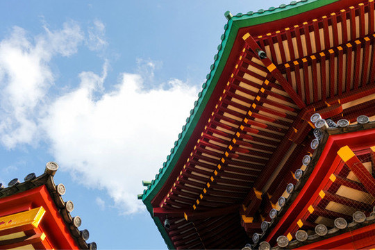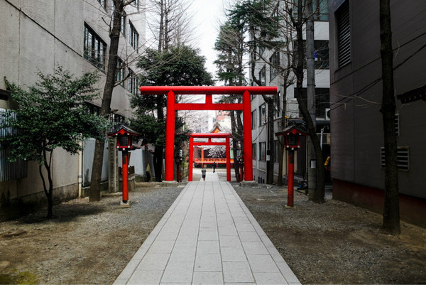 就在免税店那栋楼旁边不远,我们发现了这个闹市中幽静的神社