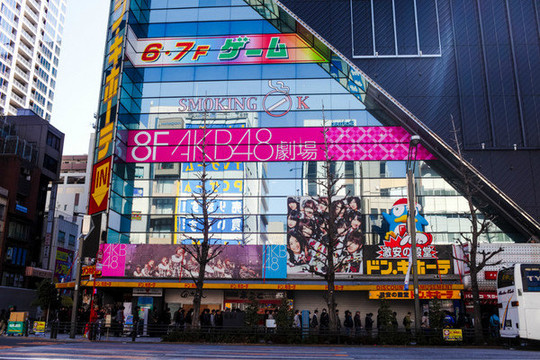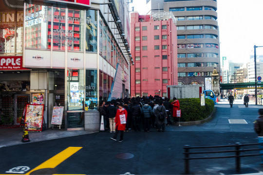 AKB48的剧场,下面已经开始排队,看来今天有歌迷会么?