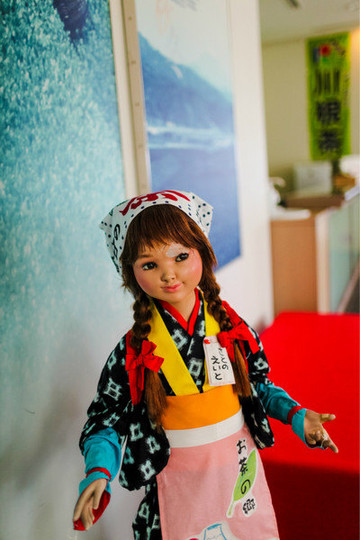 负责接待的妹子。穿的和玩偶一样。右边那位就是我们66岁的导游。。。红光满面。一点看不出来年纪