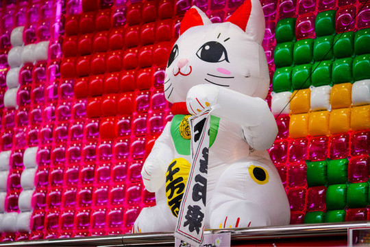 这个鲤鱼旗--引用百度(在日本,五月五日是端午节,端午节与男孩节同日,所以这天家家户户门上还摆菖蒲叶,屋内挂钟馗驱鬼图,吃去邪的糕团(称“柏饼”)或粽子。“菖蒲”和“尚武”谐音,“鲤鱼旗”表示鲤鱼跳龙门。日本人认为鲤鱼是力量和勇气的象征,表达了父母期望子孙成为勇敢坚强的武士的愿望。根据“尊重儿童的人格,谋求儿童的幸福,同时感谢母亲”的原则,规定这一天为全国公休日。),后面导游说,这个鲤鱼旗,其实就是谁家有儿子,谁家就挂起来显摆............