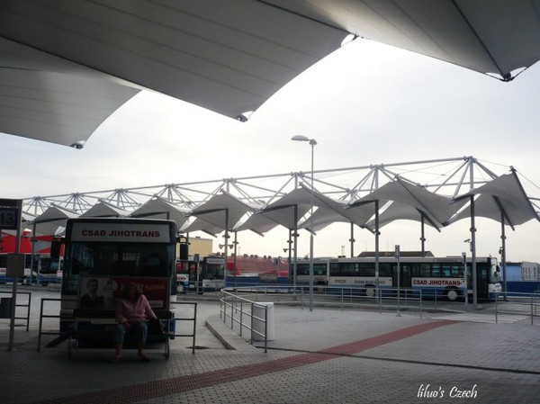 从praha出发,做大巴前往CB,大约一个半小时的时间。车上服务不错,有耳机可以听音乐,还有一杯免费的热COCO。伴着窗外的田园风光,暖呼呼的奔向远方。CB的汽车站很有意思,建在一座shoppingmall的屋顶。跳下bus后首先看见的是白色的顶棚,颇有现代动感的律动。