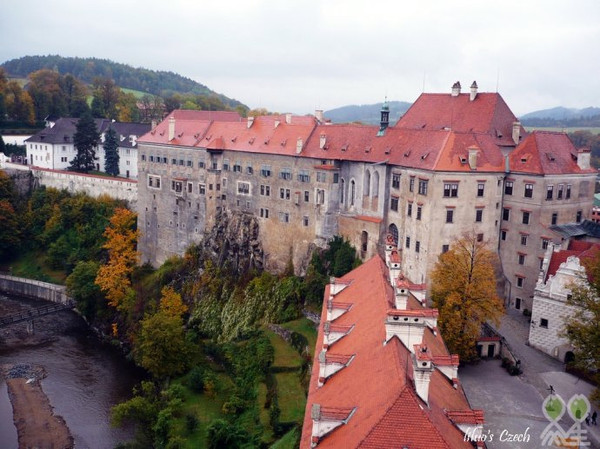 在小镇上,无论哪一个角度,第一眼看见的必定是这座精美的高塔。以至于以后的日子当中,想起CK,脑海中第一浮现的便是矗立于伏尔塔瓦河边的这座高塔。整座塔精致而不华丽,素淡的色彩,仿若用彩色的铅笔轻轻描绘出来的一般。若是天气晴好,蓝天白云之下,如童话一般梦幻。于是,我叫它彩绘城堡。