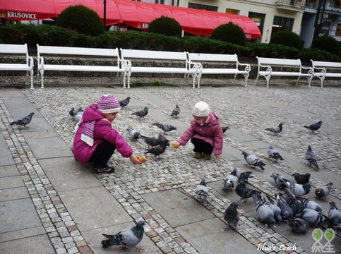 街道边,有小小的广场。鸽子,孩子。最简单的画面,总是早就最温暖的情感。