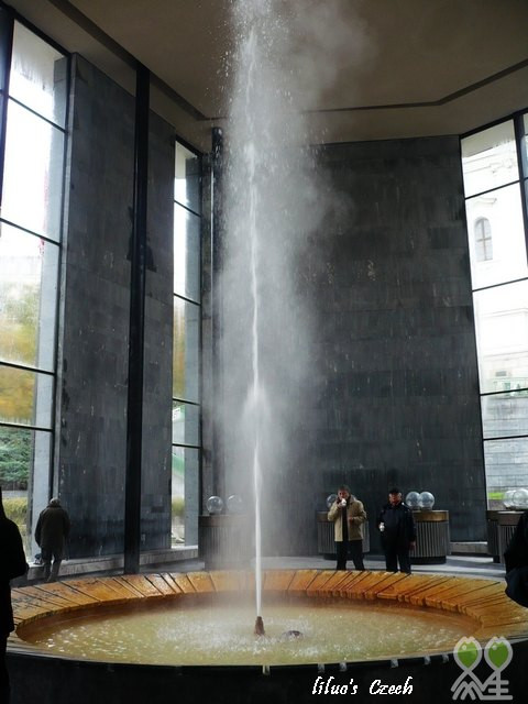 顺着 温泉长廊,到达一十几米高的穹顶大厅。此处,便是KV的泉眼之王了——著名的弗热德洛喷泉。喷出的水柱有11米高,水温达72度。滚谈的沸水从地底喷薄而出,腾起十几米的水柱。人们远远的站立着,仰望。
