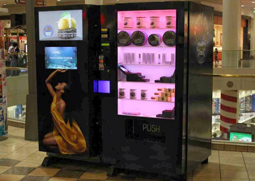 在介绍了法棍、披萨、黄金自动售卖机之后,常出现在高档餐馆的鱼子酱会进入自动售卖机好像也不是什么奇怪的事情了。BEVERLY HILLS CAVIAR 在商场里带来一台供应新鲜鱼子酱、蜗牛、松露、腌金枪鱼卵等高档食材的自动贩卖机,让更多的客户可以购买回家品尝。机器里摆放了来自世界各地超过 24 个品种的鱼子酱,从 30 美元一盎司的黑鱼子酱,到 500 美元一盎司的贝鲁加鲟鱼子酱,甚至还有给宠物吃的红鲑鱼子酱,皆任由顾客自行选择。