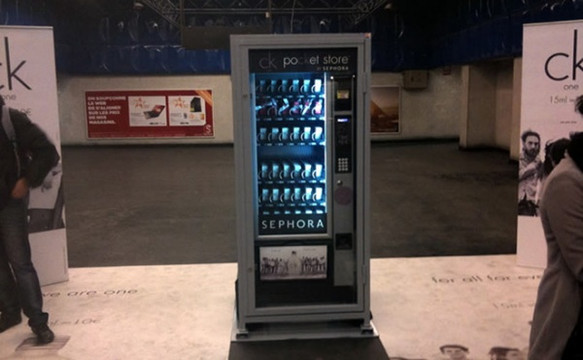 自动售货机不仅是贩卖商品,不起眼的机器有时也会起到很好的宣传价值。在新 ck one 香水上市时,丝芙兰在地铁站安装了一个袖珍贩卖机,里面仅出售 15ml 瓶装的 ck one 香水。对匆匆而过的乘客而言,自动售货机更能激发冲动购买,而且 15ml 的香水包装适合放进包里随身携带,价格也容易接受。新香水经此推广,不仅增加知名度,同时销售额也直接得到提升。