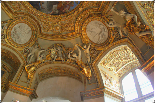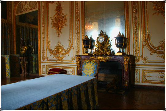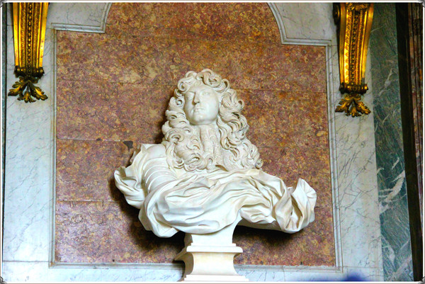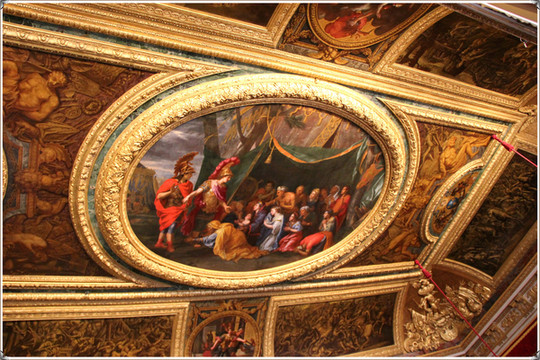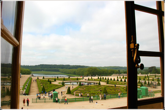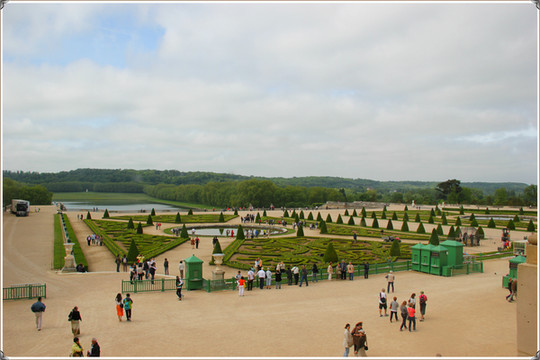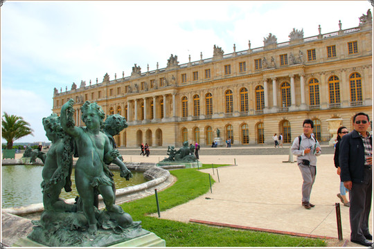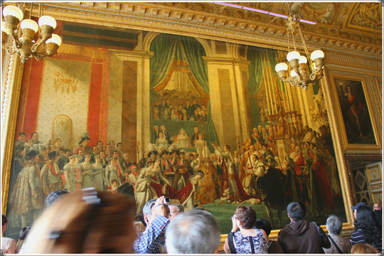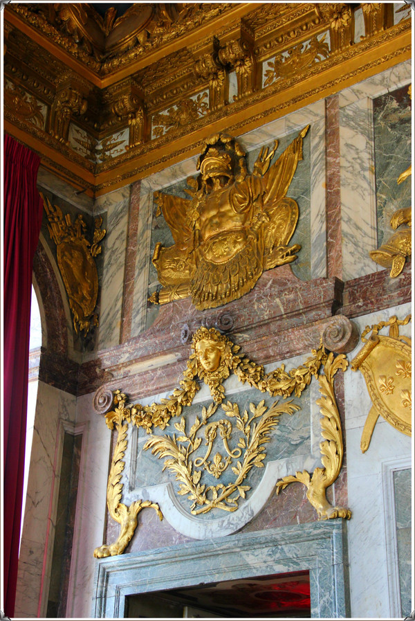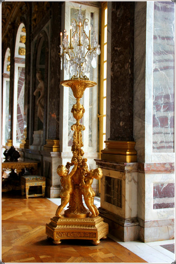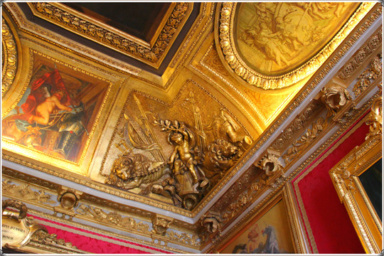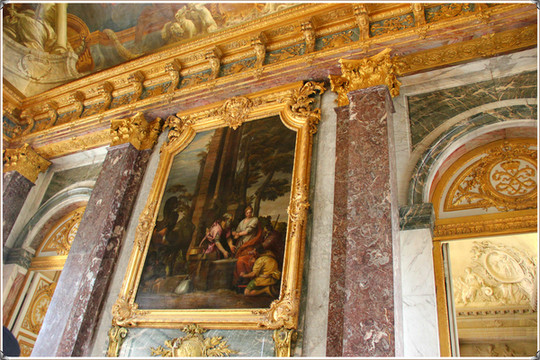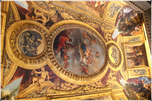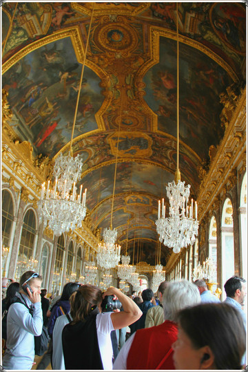 凡尔赛宫内为每位游客提供导览器,而且还有中文语音,这样很方便我们在历时二个小时内的参观游览。从天花板到地面的华丽装潢,花纹繁复,讲究平衡与对称,极尽奢华和精致,我们被眼前这个法国十七世纪艺术最为璀璨的宫殿所征服。这样辉煌的宫殿和它那精美绝伦的后花园,就算花上一天的时间都看不过来的。我们只是看到了冰山一角,很遗憾的。