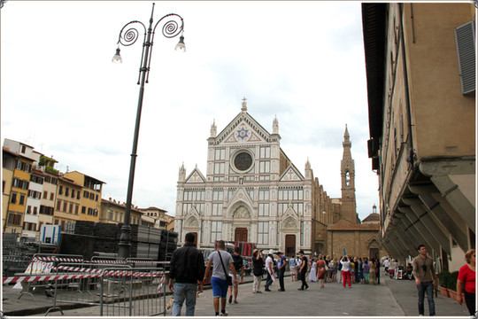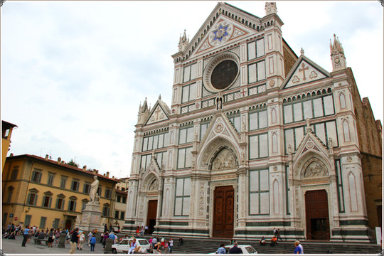 “圣十字广场”其实是因为有这座“”而得名。它的风格与“圣母百花大教堂”如出一辙,拥有新哥特式的正立面,只是规模小些。圣十字教堂坐落在广场的东侧,里面有但丁、伽利略、米开朗基罗、马基雅弗利、罗西尼等276位伟人的墓。