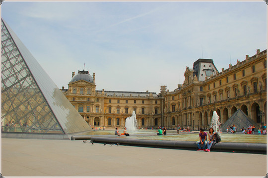 当然卢浮宫本身也是一座建筑博物馆了,每一个角度都如此完美。贝聿铭的金字塔在卢浮宫入口处,和卢浮宫相当的匹配,太完美了。