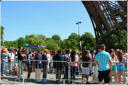 登埃菲尔塔的队伍绕了好几个弯,不知要排多长时间,反正我们是没有计划登塔的。。。