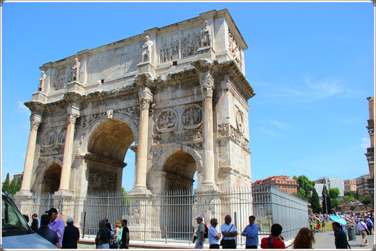 建于315年,是为了纪念君士坦丁大帝击败马克森提皇帝统一罗马帝国而建的长25.7米,宽7.4米,高21米,拥有3个拱门,其上的雕塑精美绝伦、恢宏大气,千年逝去,已是残迹斑斑,却仍在风雨中,与古罗马斗兽场共同见证罗马的辉煌。