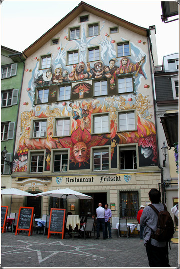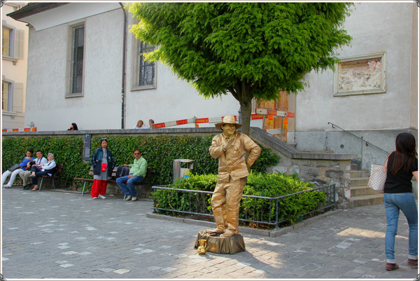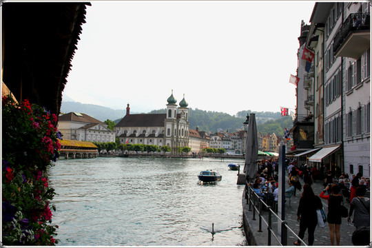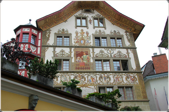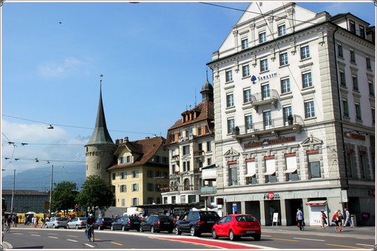 琉森不属于奢华,而属于优雅,街道两旁微黄的墙壁,圆拱或坡形的房顶,着意修饰的窗户,美丽的壁画,隐隐透出古典气息。