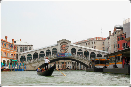 在威尼斯地众多座桥梁中,以利亚德桥(Rialto)最为有名,又名商业桥,它全部用白色大理石筑成,是威尼斯的象征。大桥长48米,宽22米,离水面7米高,桥两头用12000根插入水中的木桩支撑,桥上中部建有厅阁,横跨在大运河上,大大小小的船只从太阳型的桥洞中穿梭。
