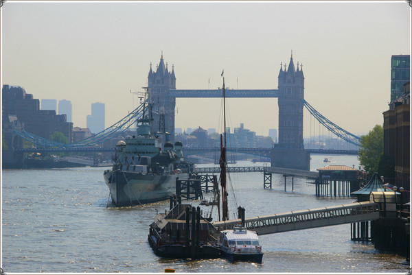 到达伦敦第一天的最后一个景点就是位于泰晤士河上的伦敦塔桥,因在附近而得名,是从泰晤士河口算起的第一座桥(泰晤士河上共建桥15座),也是伦敦的象征。