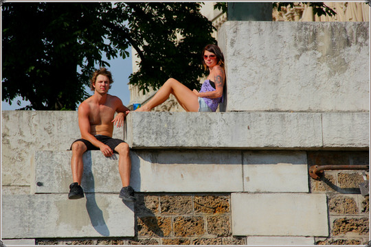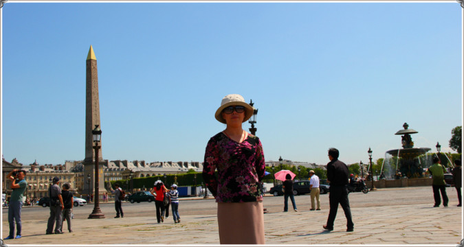 协和广场,大太阳底下的协和广场一点遮荫的地方都没有,大家拍了几张照就忽忽返回车里了,我们还是去卢浮宫吧。。。
