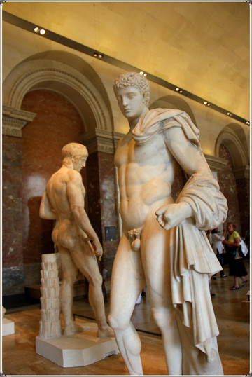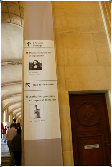 朋友曾经对我说,欧洲最值得看的艺术品是三个女人和一个男人,男人叫大卫,在意大利的佛罗伦萨。三个女人却都在卢浮宫,即《米罗岛的维纳斯》、《萨摩屈拉克胜利女神》和《蒙娜丽莎》,并以“镇馆之宝”的高傲展示着她们曼妙的身姿。卢浮宫内不允许导游讲解的,但有中文导游图,可以非常方便我们寻找参观目标。