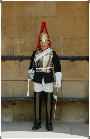 中午时分气温还是蛮高的,这样的行头使卫兵满脸汗水,但他还是一动不动保持着一个姿势。。。