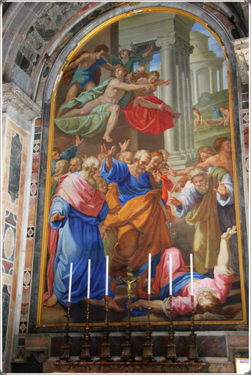 圣彼得教堂内的壁画基本上都是用大约一厘米见方的各种颜色的马赛克及彩色小石镶嵌而成,经抛光处理后基本看不出马赛克之间的拼接缝隙,逼真原画的程度超乎想象。