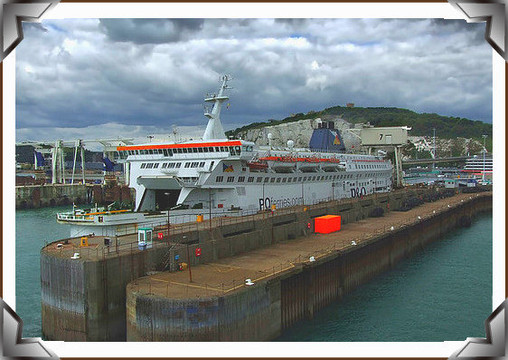 从英国到法国有三条路径1:乘飞机,2:乘欧洲之星火车从英吉利海峡海底隧道到达法国,3:在英国多佛港乘船穿越英吉利海峡到达法国的卡莱。我们是乘船穿越英吉利海峡去往法国。