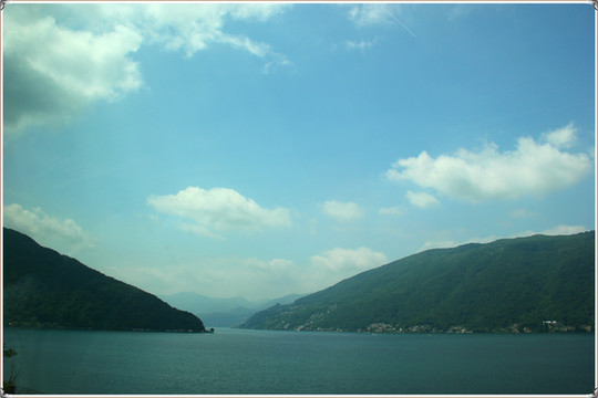 琉森湖的湖水非常清澈,从平缓如镜的湖面上望过去,对岸就是巍峨险峻的皮拉图斯山,
