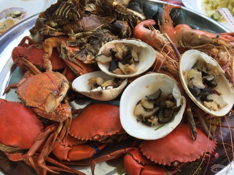 海鲜大餐也蛮诱人的,虾姑排,花蟹,鲟,咖喱蟹,冬阴功魟鱼,螺肉。。。