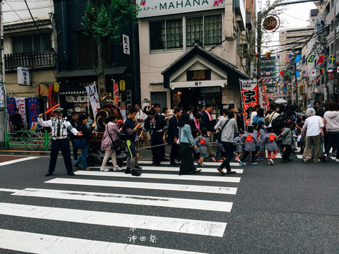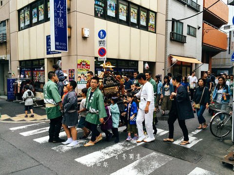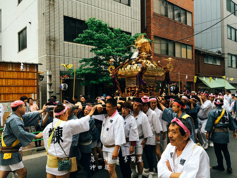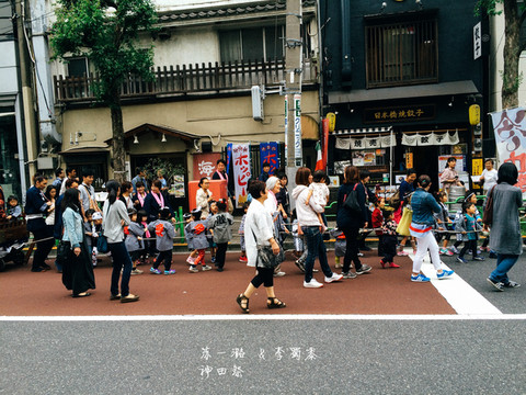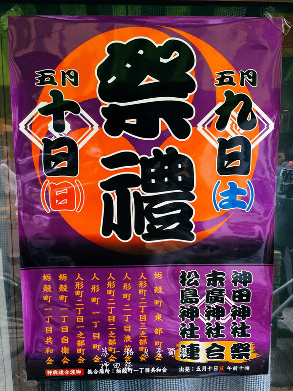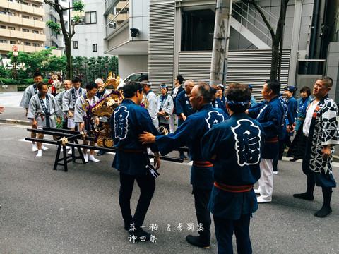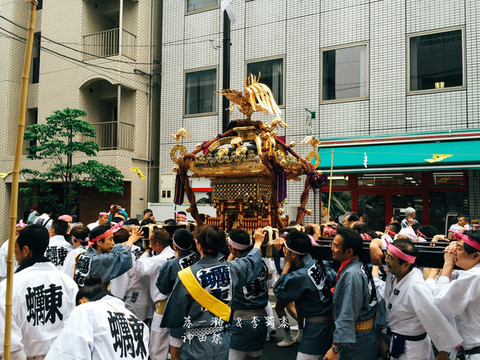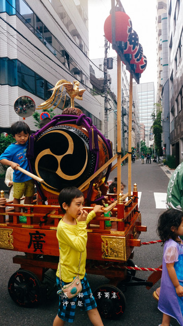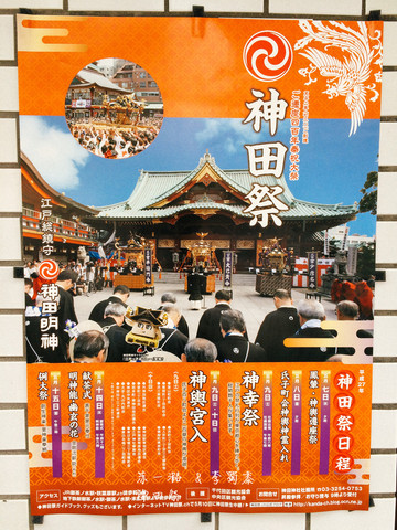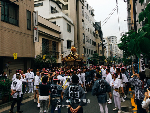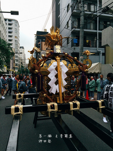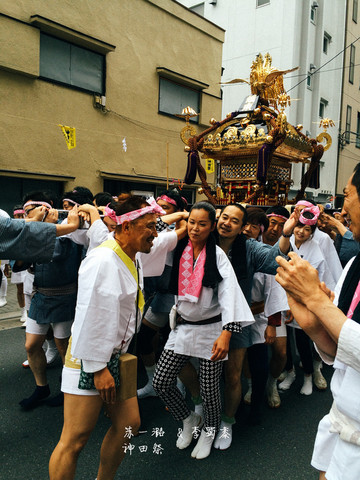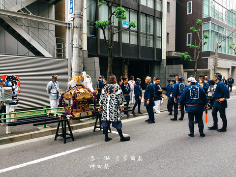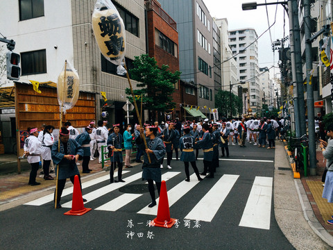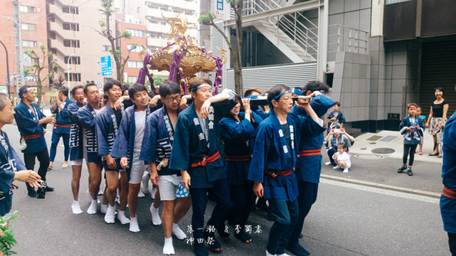 江户三大祭之一,也是与京都祗园祭、大阪天神祭齐名的日本三大祭之一。主打活动在阳历的奇数年举行,阳历偶数年的活动则规模较小。奇数年时周六的游行尤为盛大,队伍大约由300人组成,包括神轿、花车、神官等,参加者穿着平安时代的服饰,浩浩荡荡穿过神田、日本桥、大手町、丸之内等东京都中心区,再现了江户风情。周日,会有近百台神轿聚集到神田神社。我们那天是周六,没想到也遇到了。