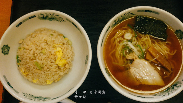 中途我们去吃了个饭~~好像店名是中华料理,哈哈~价格也不贵,小而精致。来日本吃了很多拉面啊。这家的拉面还比较清淡,当然还是一如既往地略咸呀。炒饭是我的最爱。