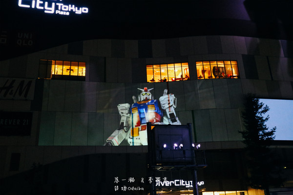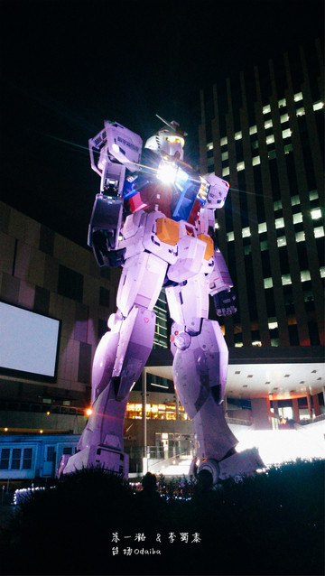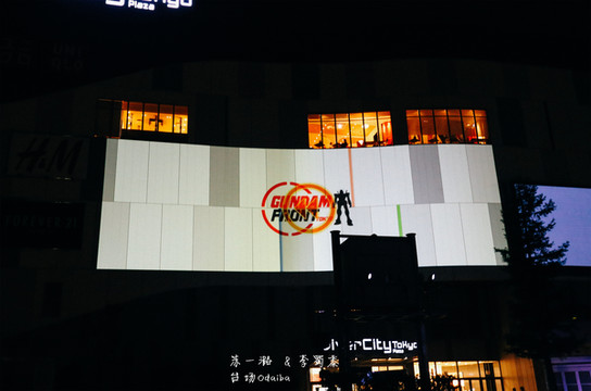 购物广场前,到了晚上有高达的动画放映,模型还会随着剧情做出动作闪烁灯光。我们晚上还来啦~
