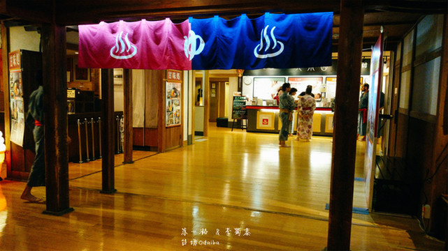 进去后,领毛巾,然后任选一个箱子存浴衣。先洗干净,才能进入温泉。有好多不同的温泉,我就记得黄金汤和绢之汤。还有雾之汤啥的。自动门外是露天温泉,还有桶之汤。我每个都尝试了一下,感觉晕乎乎的,整个人都在飘。然后冲洗干净出来,有洗发露,护发素,沐浴液,木桶,淋浴供使用。出来后还有好多梳妆台,有吹风机,还有好多护肤品。泡完温泉,脸颊红扑扑的。温泉泡浴是裸浴,是不许拍照的哟~然后就出来啦~
