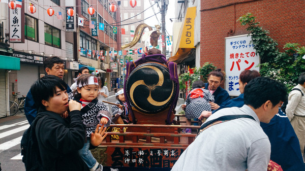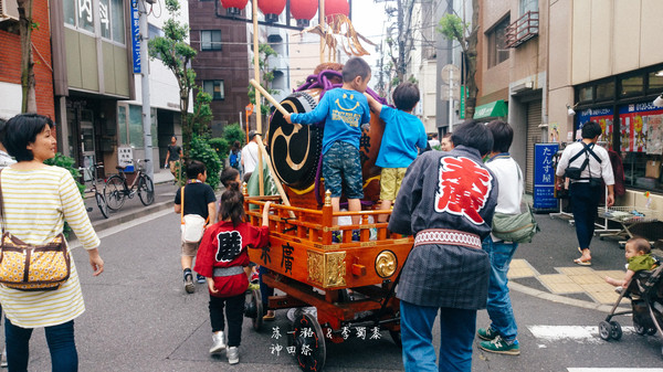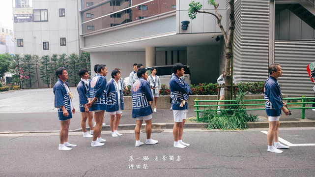 结果刚好赶上神田祭,不同神社,不同区域的人都穿着节日礼服,抬着轿子绕着街走,我们也跟着玩。