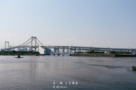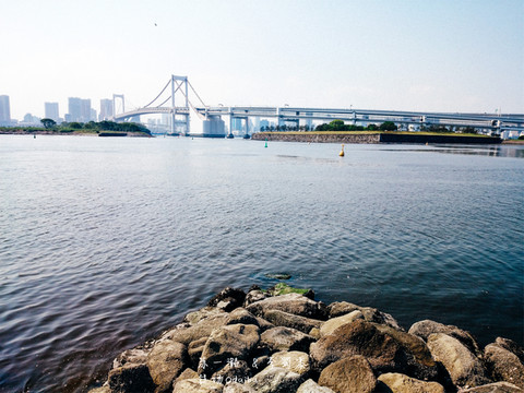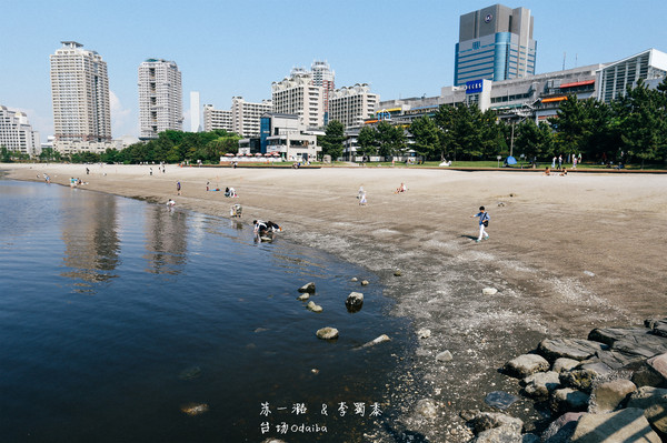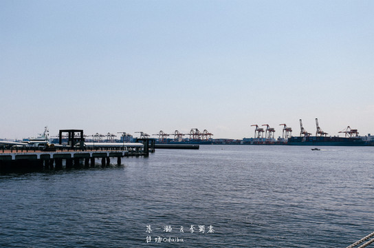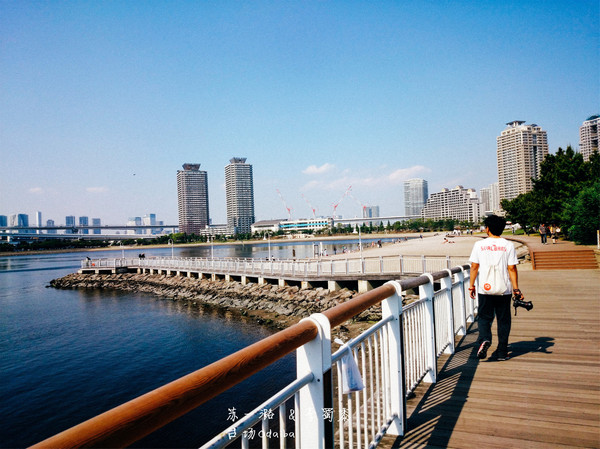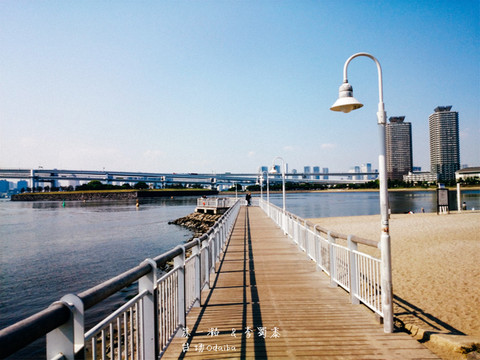 哎呀,好像美国呀~如果没有电灯的话~~这里还能看到彩虹大桥,还有台场海滨公园。我们沿着海边溜达拍照。
