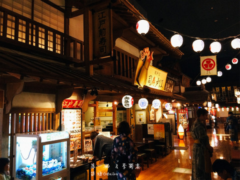 最值得一提的就是完全再现了江户风貌的古老街坊,以“广小路”为主要街道,有吹箭、套圈、算命等传统民间游艺以及棉花糖等小吃摊点,加上不定期举行的民俗节目,可以在泡汤的同时,感受地道的古老江户生活。