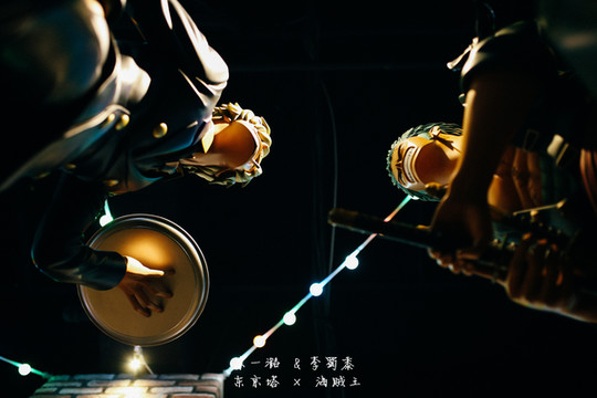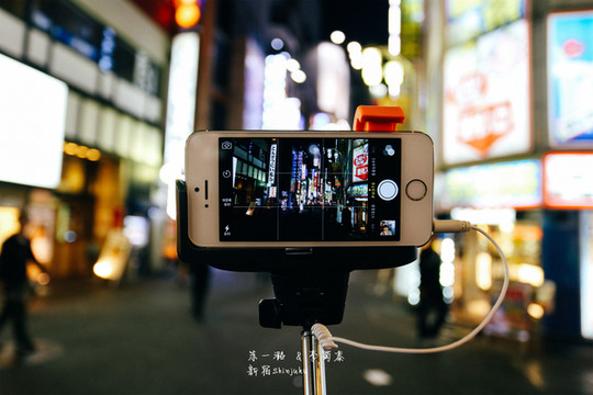 哈哈,两个神经病~~自拍杆上有个橙色,还挺像火把的~~