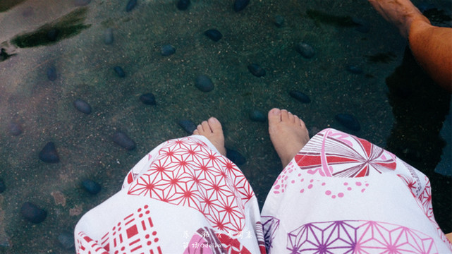 温泉有足浴和温泉泡浴。足浴是男女共浴,是在室外,温度适宜。我们先去了足浴。