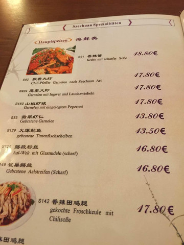 第二天我开始开会,小子自己又去逛商场,回来和我说在火车站附近有个叫蜀都的中餐馆剧贵,一盘排骨要32欧,据说当年冯远征在汉堡留学时提到过这家馆子。好像中戏的人到汉堡都会去哪吃饭。小子在那要一小碗凉皮,一盘青椒肉丝加一碗饭收了25欧。