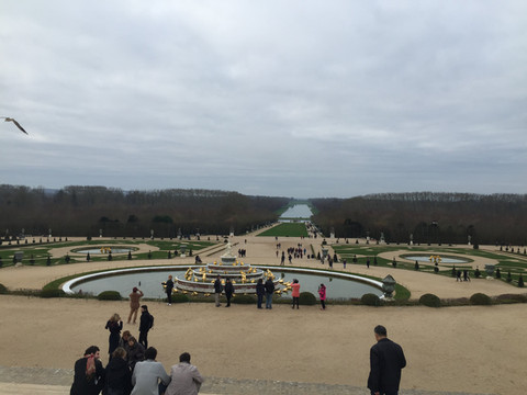 每人10欧,我们是携程拼的5个人,五菜一汤,一盘虾,一盘排骨,一盘醋溜白菜,豆腐,木耳炒肉丝加一大碗胡辣汤。价格比较实惠,量不大,吃的很好,特别是在外面吃了一周的洋饭,看见大米饭的心情是非常激动的。从枫丹白露到凡尔赛宫大概开车过去要1个小时。凡尔赛宫当然是美轮美奂,本来以为小子可以不用票进去,谁知这项规定只适合欧盟的学生。我们团里的一个在英国留学的小女孩进去了,小子被拦住要求买票。后面的花园也要坐电瓶车才能走完。我们没有做,在里面逛了大约3小时。完成一天。司机又把我们送回意大利广场,我和小子决定在附近找个餐馆吃饭后回去。看到餐馆标志,走进去一看还是土耳其餐馆。类似的牛肉或鸡肉,土豆条,西红柿生菜沙拉。加可乐25欧两人。好在今天大部分消费都可以刷卡。