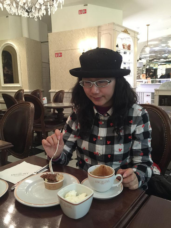 累啊,去2楼的著名甜品店,吃吃喝喝。最浓郁的热巧克力,最不甜又醇厚的栗子蛋糕。