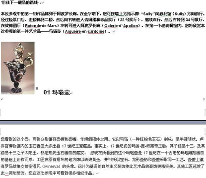 包括接待大厅、皇家寝室、胜利女神楼梯、米开朗基罗长廊、拿破仑三世套房等卢浮宫最著名的参观点。