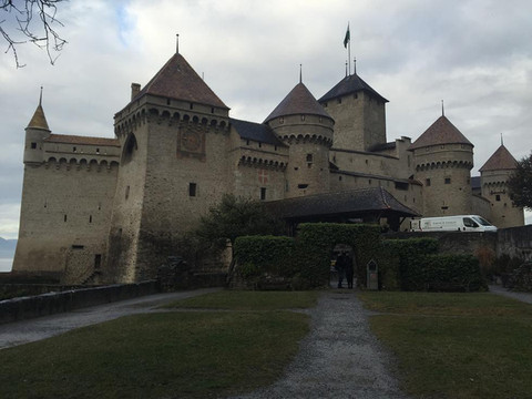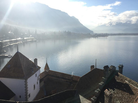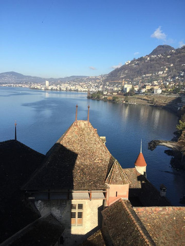【西庸城堡】:西庸城堡位于阿尔卑斯山脚下,充满魅力的日内瓦湖湖畔,是瑞士最具代表性的古堡。西庸城堡的基石建在湖底,给人一种漂浮在湖面上的感觉,但城堡看起来异常坚固,中世纪的灰白色砖墙配上红色圆锥顶,与周围依山傍水的景致融为一体,美丽如画。这座承载了千年历史的古堡也给了文人墨客无限灵感,卢梭、雨果,拜伦、大仲马等都曾在此留下足迹,拜伦挥笔下的《西庸的囚徒》更是让这座城堡声名远扬。