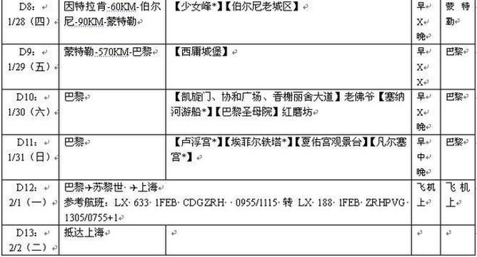文字版行程: