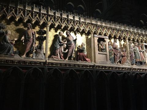 【巴黎圣母院】:巴黎圣母院因法国著名作家维克多·雨果在同名小说《巴黎圣母院》中的诗意描绘而扬名世界。这是一座哥特式风格的基督教教堂,是古老巴黎的象征。 历史变迁巴黎圣母院矗立在塞纳河畔的西岱岛上,位于整个巴黎城的中心。教堂约建造于1163年到1250年间,经历了巴黎的历史变迁。教堂的祭坛、回廊、门窗等处的雕刻精美,堂内收藏了13-17世纪的大量艺术珍品。《巴黎圣母院》吸引了很多读者爬上钟楼去寻找钟楼怪人。参观路线和看点教堂底层有三扇大门,大门上饰有琳琅满目的雕像。中间的是末日审判门,门楣中心上是耶稣作最后的审判以及衡量世人品格的场景。左边是圣母玛利亚门,门楣中心上是圣母戴冠的场景。右边则是最为古老的圣安娜门,门楣中心上是圣母献婴图,显示出罗曼风格的庄严。