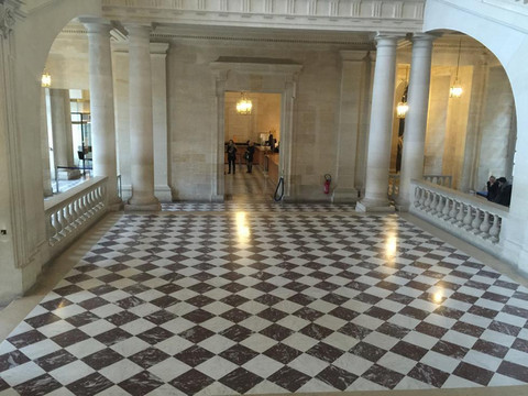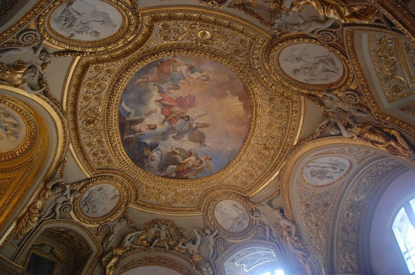 战神厅:天花板上有奥德朗的油画《战神驾驶狼驭战车》。大厅内壁炉两端有大理石平台,曾经布置台球桌。波旁王朝时期的国王经常在此召开宫廷音乐演奏会或赌博牌会。
