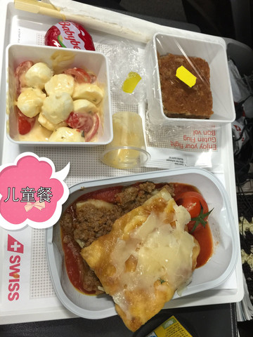 瑞士航空感觉很好。空中服务员一半是中国人,老人沟通起来很方便,而且态度和蔼可亲,比澳航强多了。外国的服务员也都很漂亮。最NICE的是饮料自己可以随时去倒。送的儿童礼物也很实用:帆布包、毛绒小飞机和涂色笔。儿童餐提前送,又好看又好吃又有营养。为了避免孩子坐15小时飞机会无聊,我自己也特意带了画册,涂色笔,可以随时让她画画涂色;我还带了故事版本的扑克,即可以打牌又可以学英语还能讲故事,孩子还能认字;打牌我们玩了钓鱼、24点、抽乌龟。。。自己还下载了很多孩子爱看的电影动画;给孩子换着方法玩,这样15小时很快就消磨过去了。