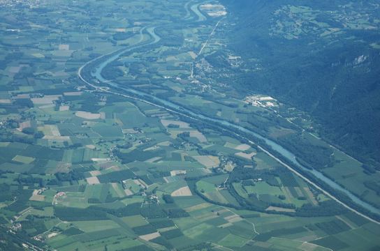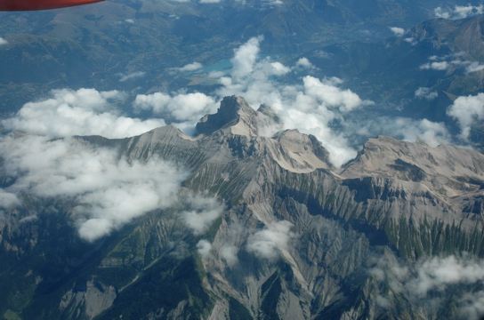 过了尼斯,就告别地中海,进入陆地.此时机翼下群山逶迤起伏,这正是阿尔卑斯山,不过是在山的西麓了,飞机是向南绕了一个弯后才又贴着阿尔卑斯山的西侧往北飞向里昂.群山间,河流奔腾,,偶有一个个高山湖泊出现.如宝石般镶嵌在墨绿色的山间.我和女儿紧贴着机窗,想分辩哪个是安纳西湖,哪个是日内瓦湖,终究分辨不出.