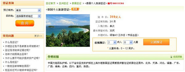 4.签证:在有泰国领事馆的城市,可以直接去领事馆申请个人自由行签证,如果不是领馆所在城市可以选择让旅行社代办,由于南京没有泰国领事馆也去上海签,比较了很多旅行社,发现途牛的是最便宜的,泰国大使馆网站上的个签费用是要230人民币,途牛的签证价格是319,只赚了100元,还算比较合理。泰国自由行签证手续很简单,不需要提供复杂的材料,只需要半年内有效护照和白底2寸照片2张即可,材料交给途牛,交了钱就可以,签好后会直接发快递送给你。