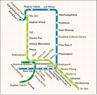 但是如果选择亚航的话,就会稍微有些不方便,亚航是降落在的老机场即廊曼机场,那里没有直达市区的地铁,可以选择坐公交,打车,坐火车,我们这次是选择打车,由于的堵车是有名的,怕全程打车耗时太长,所以选择打车+BTS的方式,酒店是订在BTS的chong Nonsi站附近,离廊曼机场最近的一个BTS站是Mo chit站,从廊曼机场打车到Mo chit站大概150泰铢左右,到了Mo chit站就可以坐BTS到Siam站转个车就直接到chong nonsi,票价40泰铢,的BTS买票是自动投币,只收硬币,有人工窗口但不负责卖票,负责把纸币换硬币。